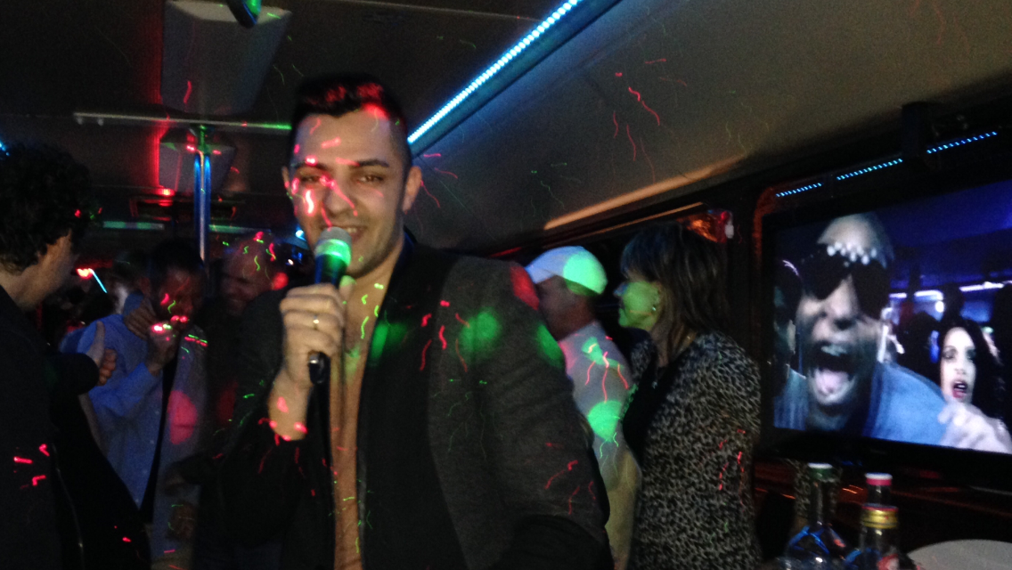 Bocskor Gábor élőben közvetített partybuszunkról.